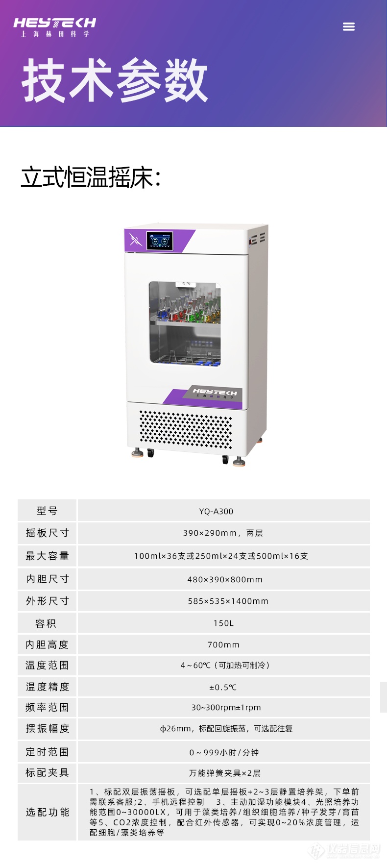 摘要: YQ-B300 立式恒温摇床(亦称振荡培养箱),集恒温、振荡、培养功能于一体。其精准的温控(4-60℃±0.5℃)与稳定的转速(30-300rpm±1rpm),适用于细胞培养、微生物发酵、生化反应等多种实验。220L大容量内胆与灵活的多层摇板设计,提供了出色的样品处理能力。支持选配光照、CO2;及加湿功能,是高校实验室、质检部门等高性价比的理想选择。