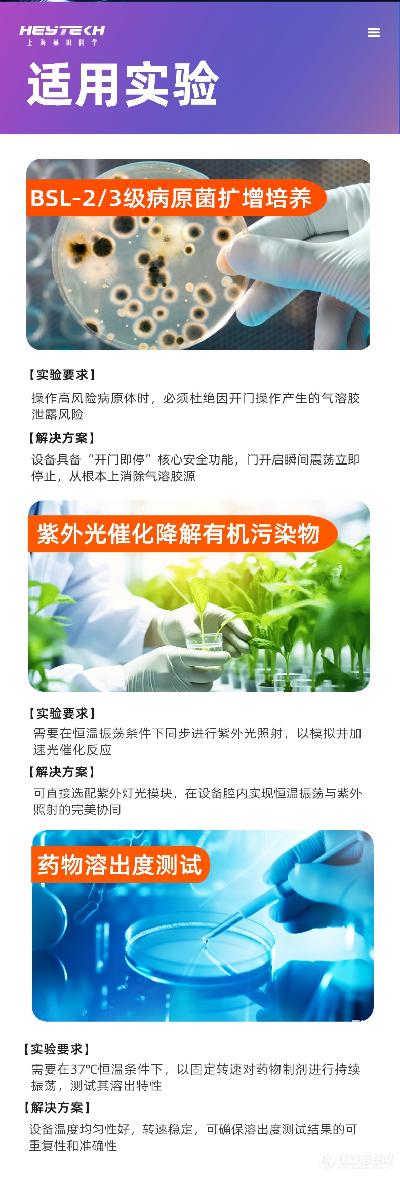 高校与研究机构:分子生物学实验、细菌/细胞培养、发酵研究。