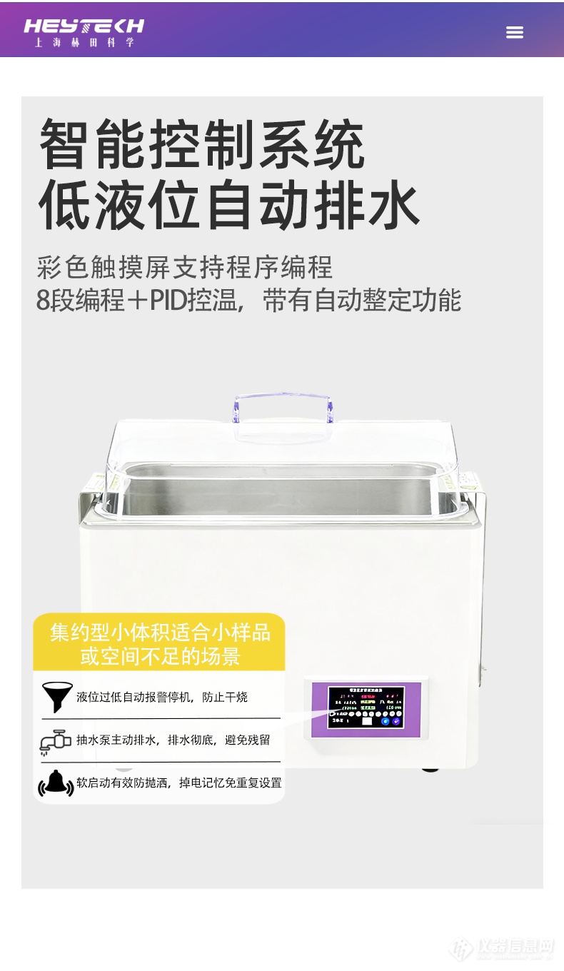 低液位保护:当液位过低时自动报警并停机,有效防止干烧现象,保护设备与样品。