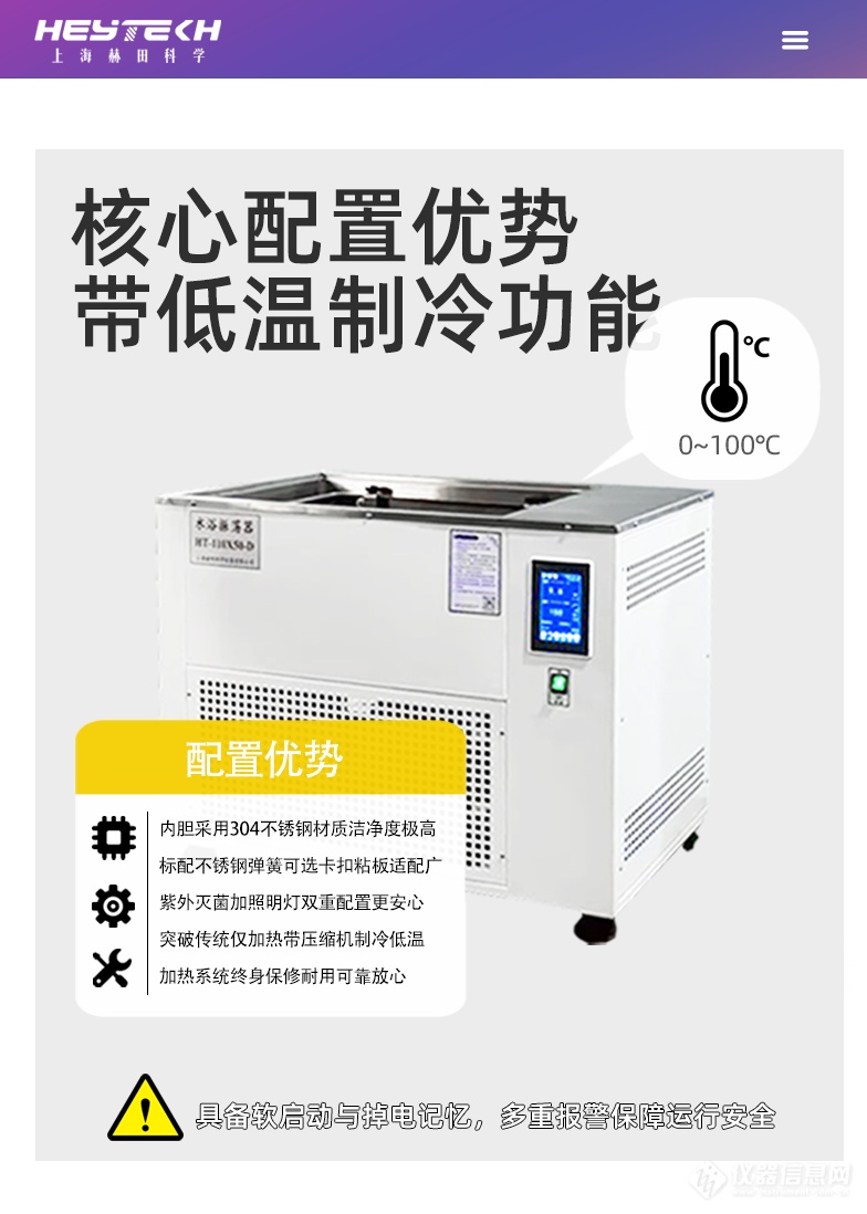 告别单一加热: 内置高效压缩机制冷系统,实现了从 0℃ 至 25℃ 的精准低温控制,完美覆盖室温以下的实验需求。