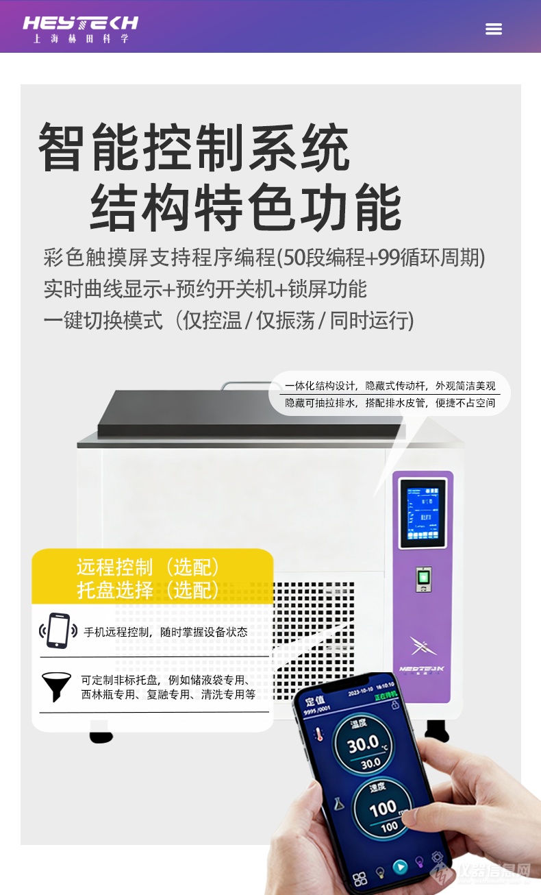远程控制(选配): 可通过手机远程监控设备状态、调整运行参数,让您“离开实验室,掌控实验中”。