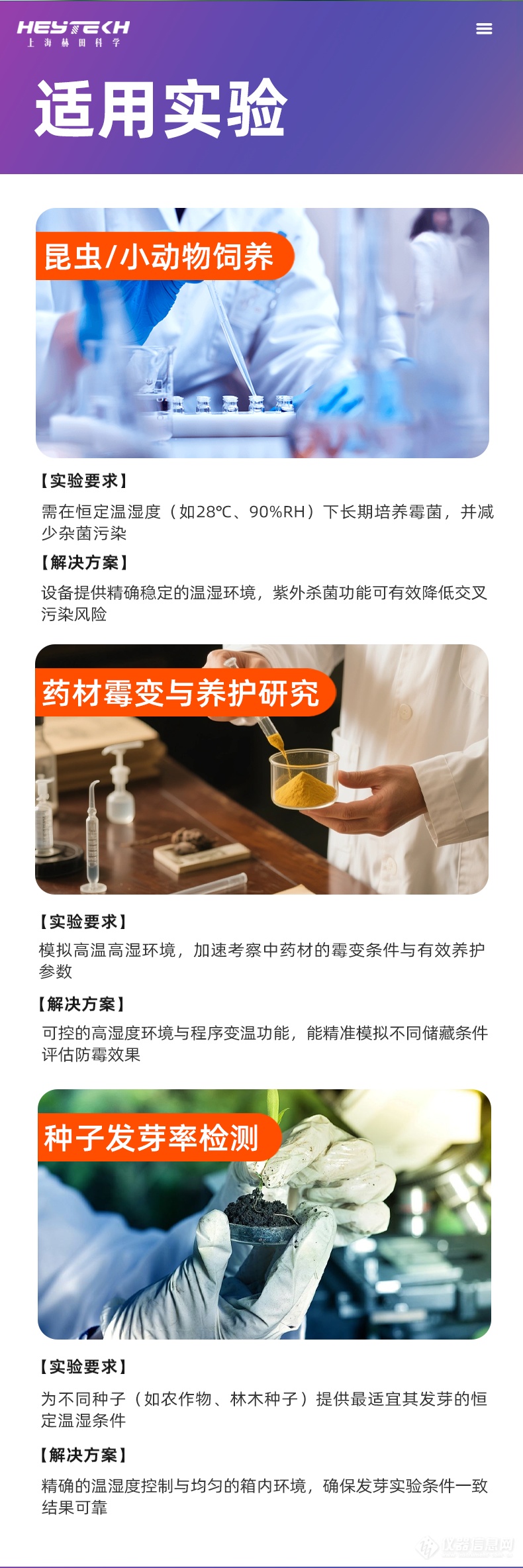 霉菌培养箱适配植物生长/组织培养、种子发芽育苗、微生物培养、昆虫/小动物饲养、水质BOD测定、药材/建材老化测试等多元实验场景,是保障实验数据精准可靠、流程高效运行的基石。