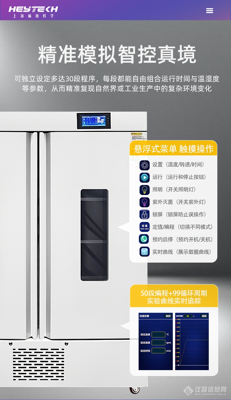 2、 精准控制:30段程序编程,配合高精度传感器与PID算法,实现温湿度精确控制与快速响应。