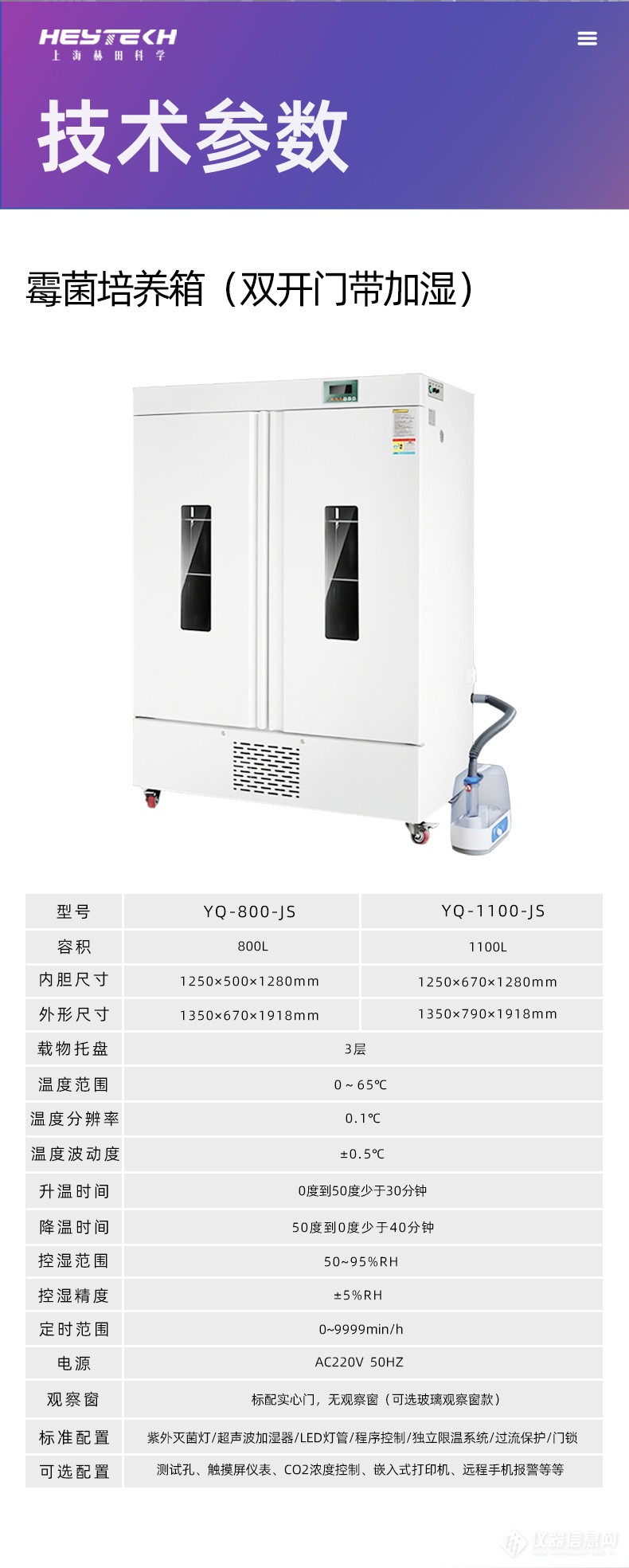 标准配置 | 紫外灭菌灯、超声波加湿器、LED灯管、程序控制器、独立限温系统、过流保护、门锁 | |||