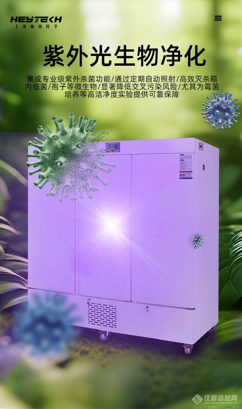 1、 洁净保障:集成紫外杀菌灯,有效降低微生物交叉污染风险,专为霉菌等敏感培养设计。