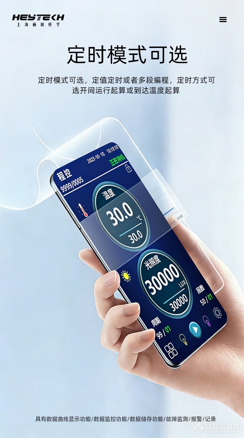 3、 全面的定时模式:支持定值运行或多段编程,定时起始点可选择“开机即计时”或“达到设定温度后计时”。