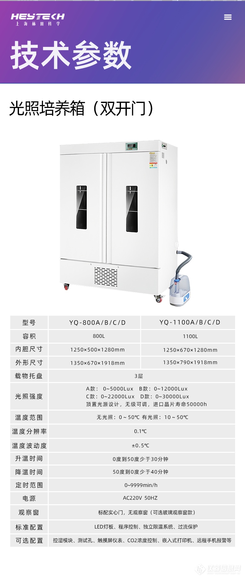可选配置 | 控湿模块、测试孔、触摸屏仪表、CO2;浓度控制、嵌入式打印机、远程手机报警等 | |||
