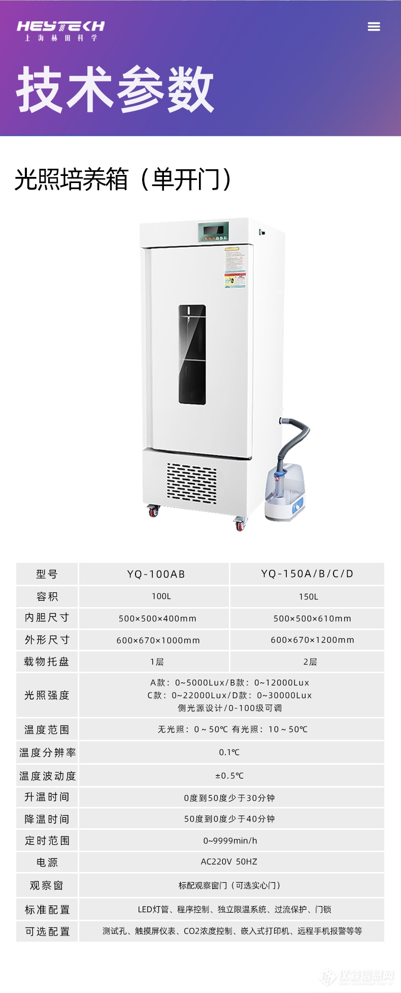 立式单开门光照培养箱产品介绍