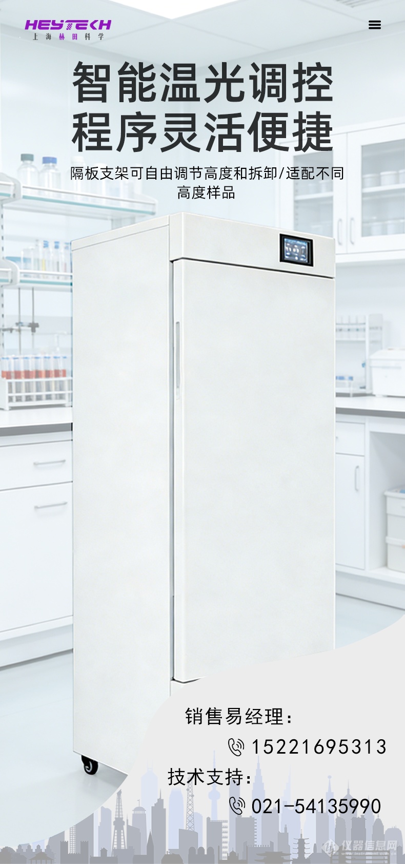 2) 灵活空间:隔板支架可自由调节高度和拆卸,轻松适配不同高度的实验样品。