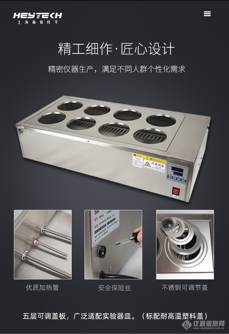 配备独立的可调盖板,包含5层不同尺寸的圈盖,能适配大多数锥形瓶与烧杯(标配为耐高温塑料盖板),大大提升了设备的通用性。