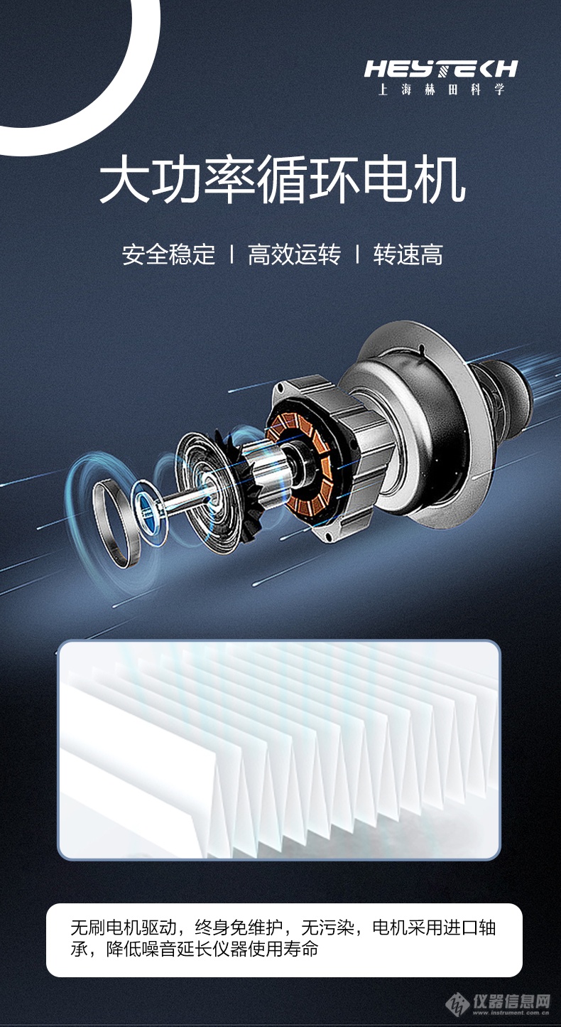 高效驱动系统:无刷电机驱动,终身免维护,无污染;电机采用进口轴承,有效降低噪音并延长仪器使用寿命。