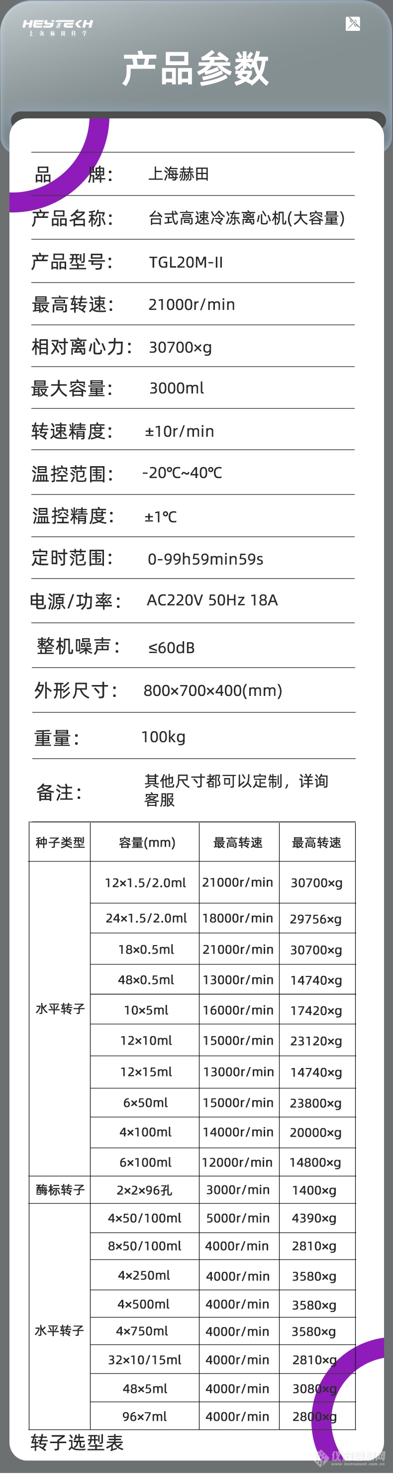 | 角转子 | 4×100ml | 14000 | 20000 |
